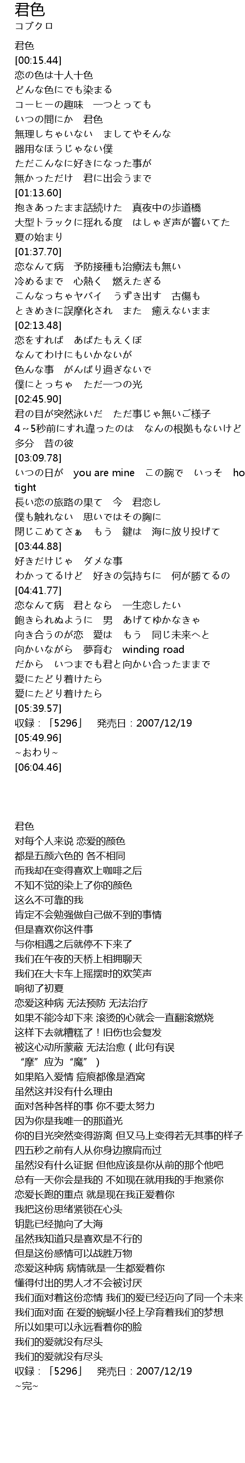 | [05:43.81] | shōu lù: 5296 fā mài rì: 2007 12 19 |