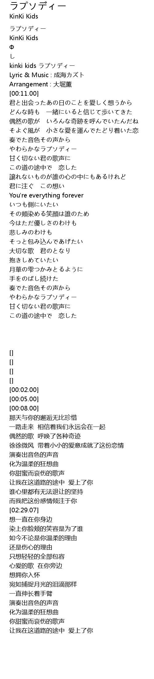 | [00:02.00] | kinki kids ラプソディー |