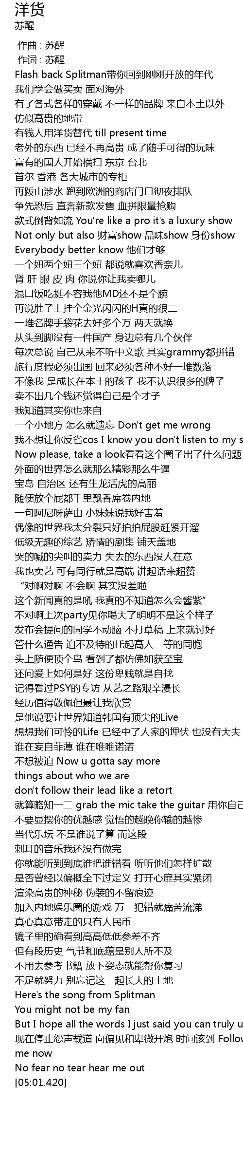 | [01:11.960] | 从头到脚没有一件国产 身边总有几个伙伴 |