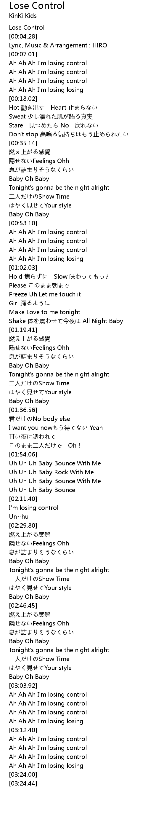 | [03:04.69] | Ah Ah Ah I' m losing control |
