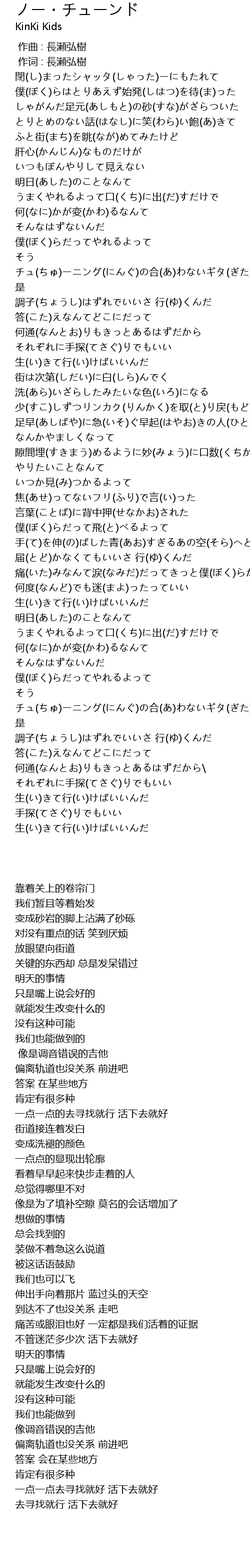 | [03:38.220] | そう チュ(ちゅ)ーニング(にんぐ)の合(あ)わないギタ(ぎた)ーみたいに 是 |