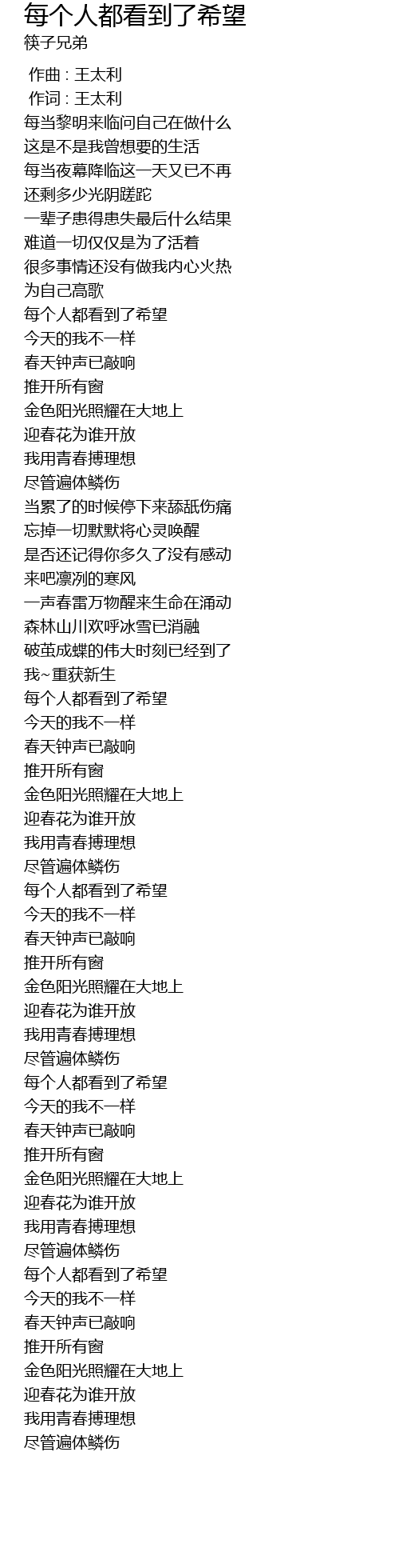 | [00:41.75] | mei ge ren dou kan dao le xi wang |