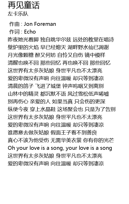 | [03:11.120] | 谁愿意去做灰姑娘 假面王子看不到善良 |