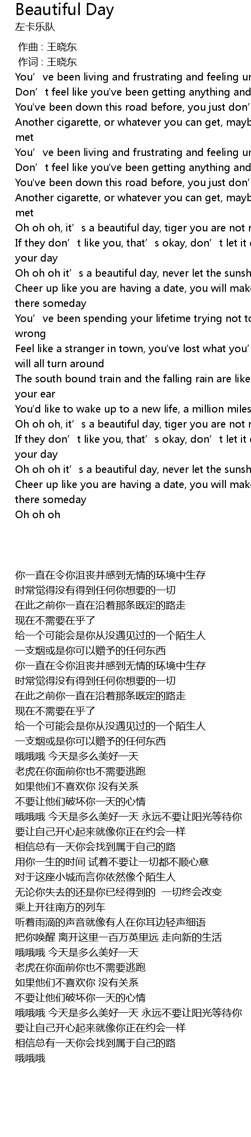 | [01:31.490] | Oh oh oh, it' s a beautiful day, tiger you are not running away |