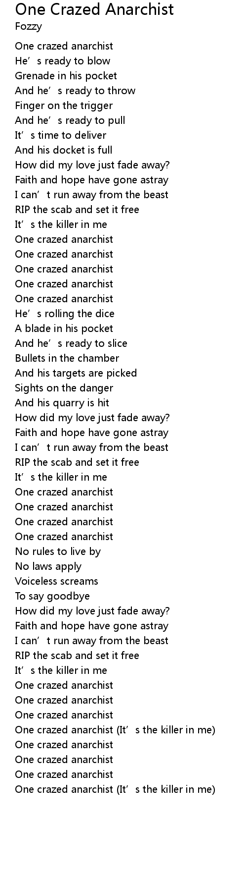 | One crazed anarchist (It’s the killer in me) | |