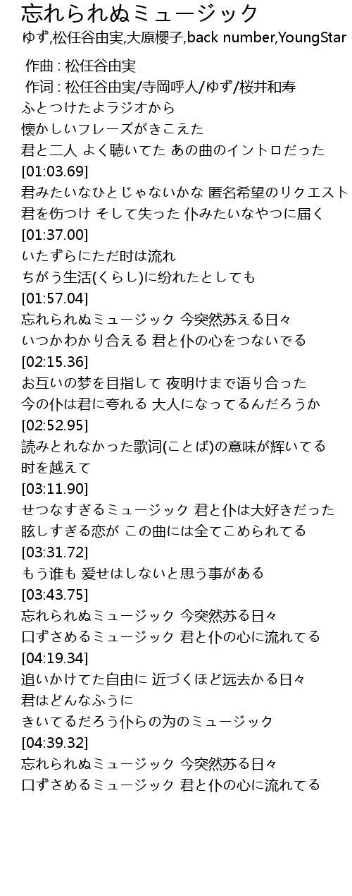 | [04:01.46] | 忘れられぬミュージック 今突然苏る日々 |