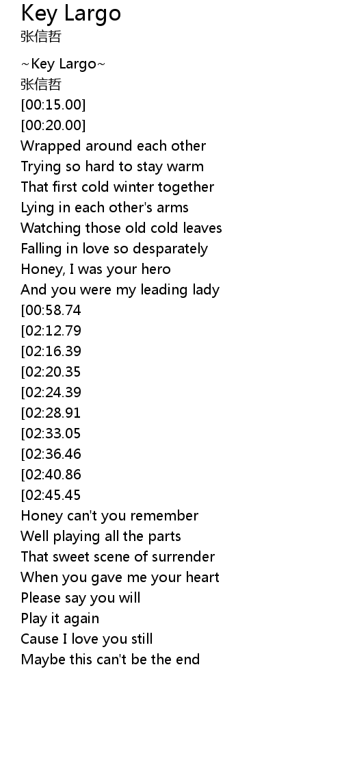 | [03:23.07][02:40.86][01:27.81] | Just like they did in Key Largo |