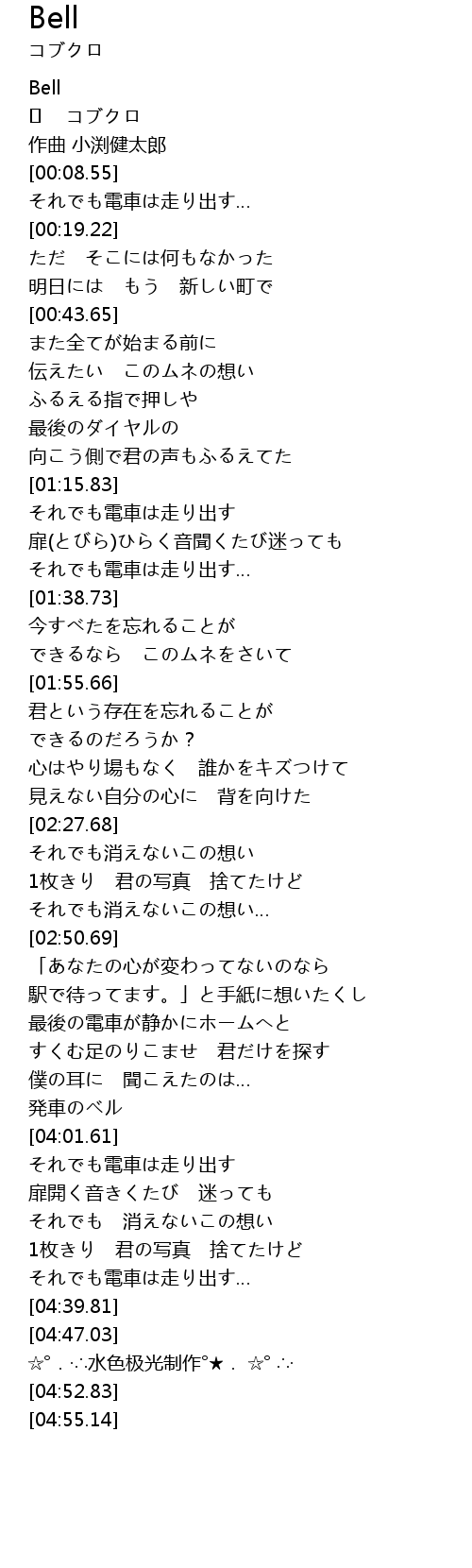 | [03:39.53] | 最後の電車が静かにホームへと |