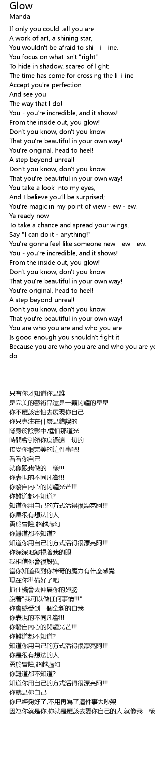 | [00:48.63] | That you're beautiful in your own way! |