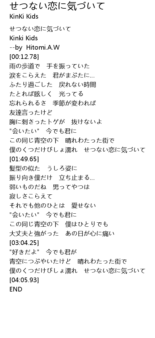 | [03:49.14] | 僕のくつだけびしょ濡れ せつない恋に気づいて |