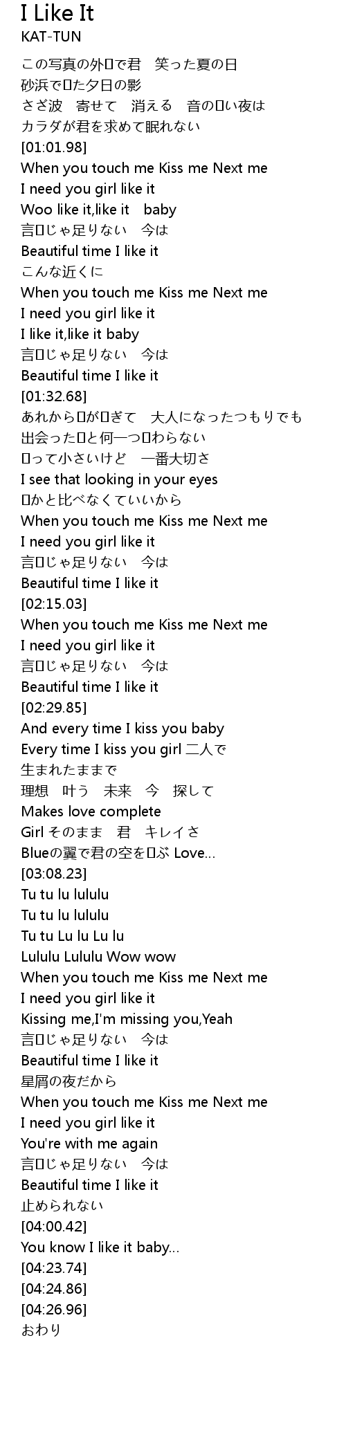 | [02:05.20] | I need you girl like it |
