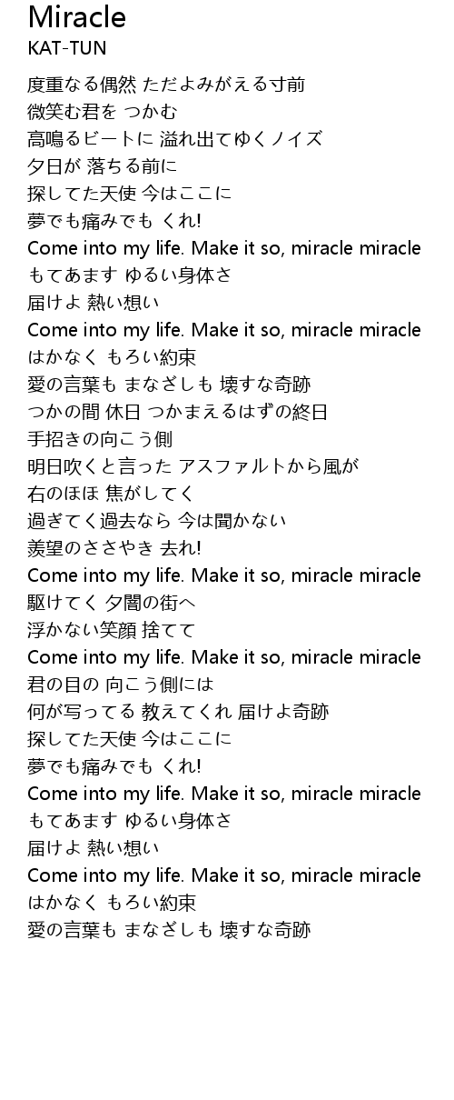 | 愛の言葉も まなざしも 壊すな奇跡 |