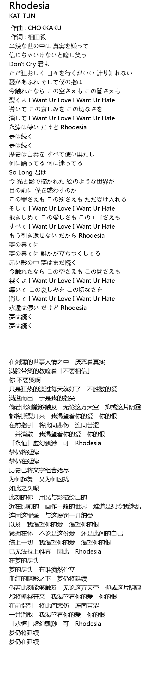 | [01:35.62] | yǒng yuǎn méng Rhodesia |