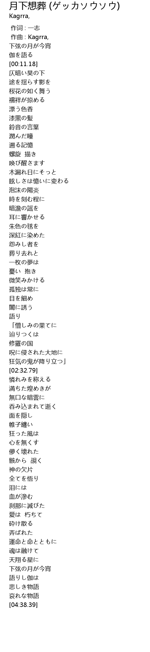 | Song | 月下想葬 (ゲッカソウソウ) |