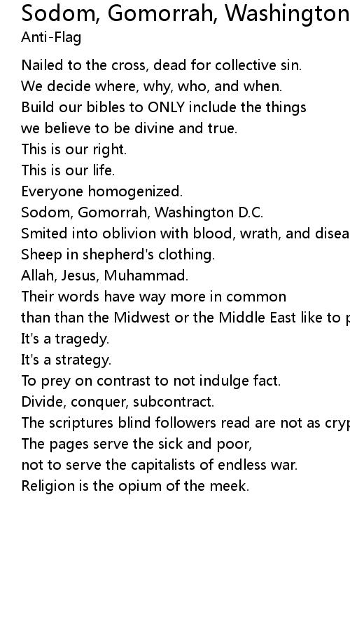 Sodom, Gomorrah, Washington D.C. (Sheep in Shepherd's Clothing) Lyrics