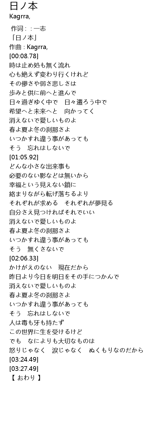 | [01:53.54] | 春よ夏よ冬の刹那さよ |
