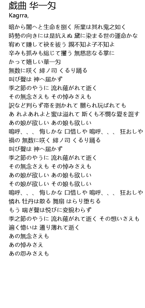 | Song | 戯曲 华一匁 |