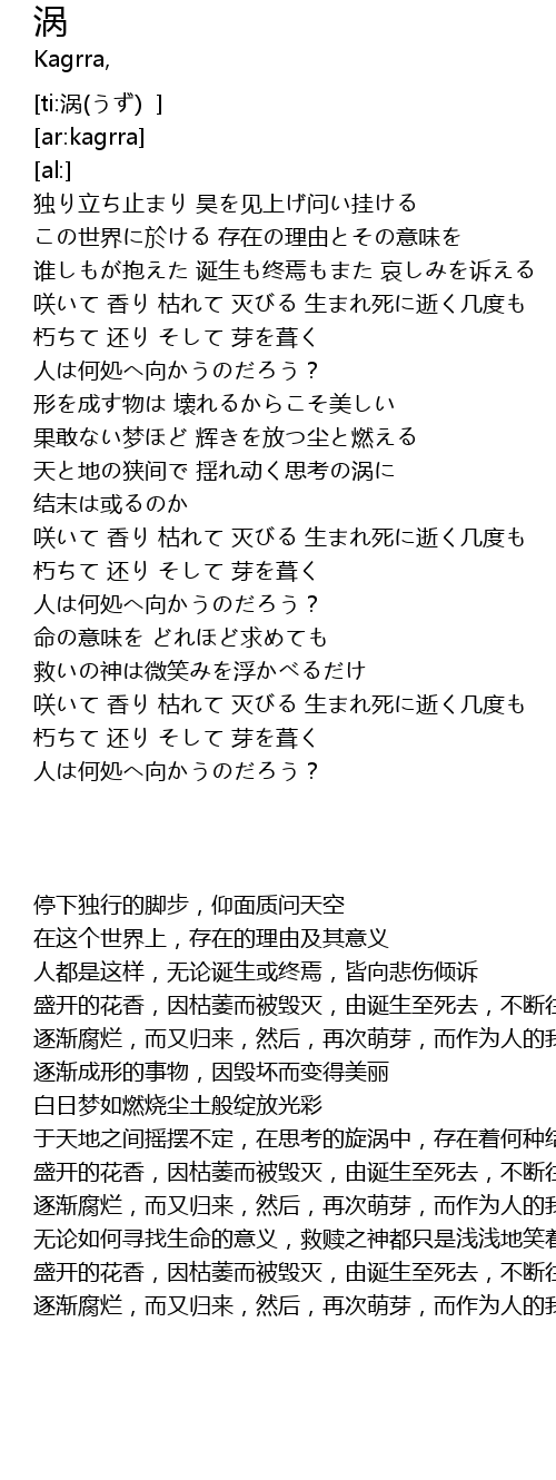 | [00:57.01] | 谁しもが抱えた 诞生も终焉もまた 哀しみを诉える |