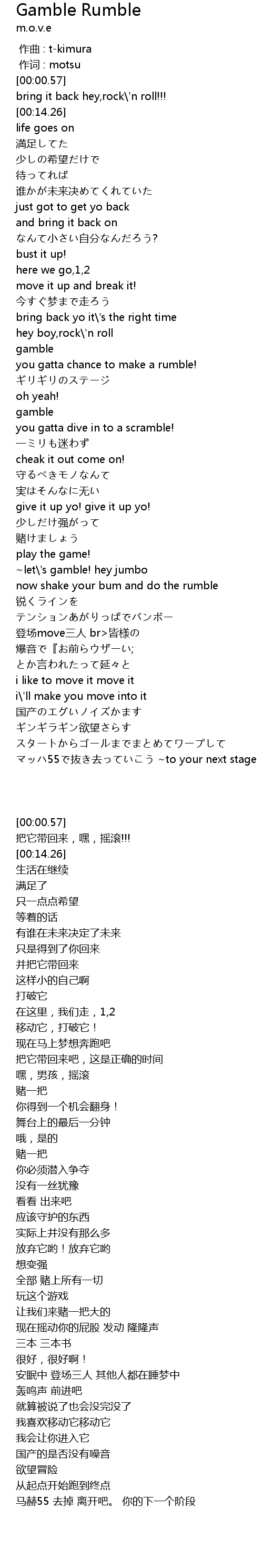 | [01:10.51] | ~let\'s gamble! hey jumbo |