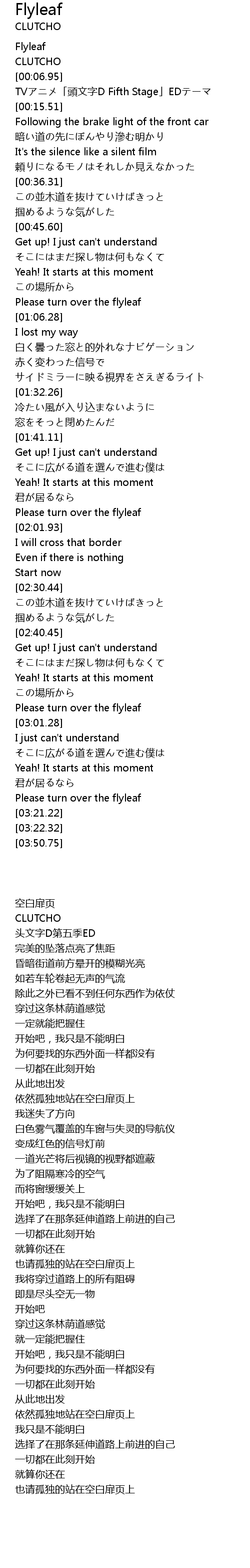 | [00:07.96] | TV tóu wén zì D Fifth Stage ED |