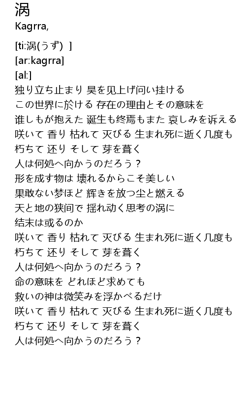 | [02:01.79] | 咲いて 香り 枯れて 灭びる 生まれ死に逝く几度も |