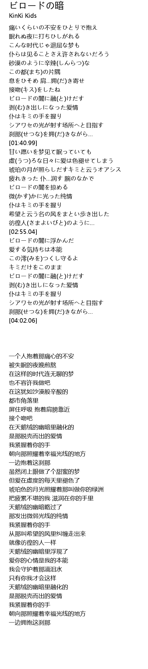 | [03:20.92] | ビロードの闇に融(と)けだす |