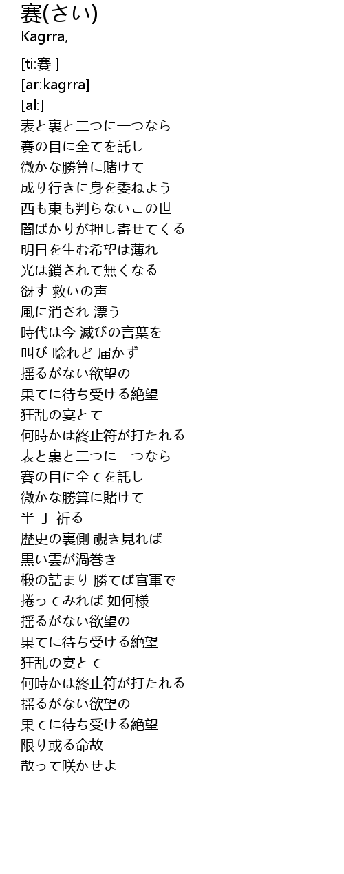 | [02:40.75] | 果てに待ち受ける絶望 |