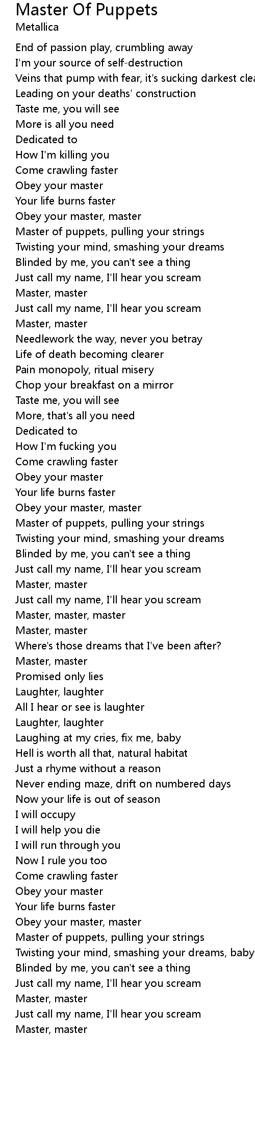 Master of puppets, pulling your strings |
