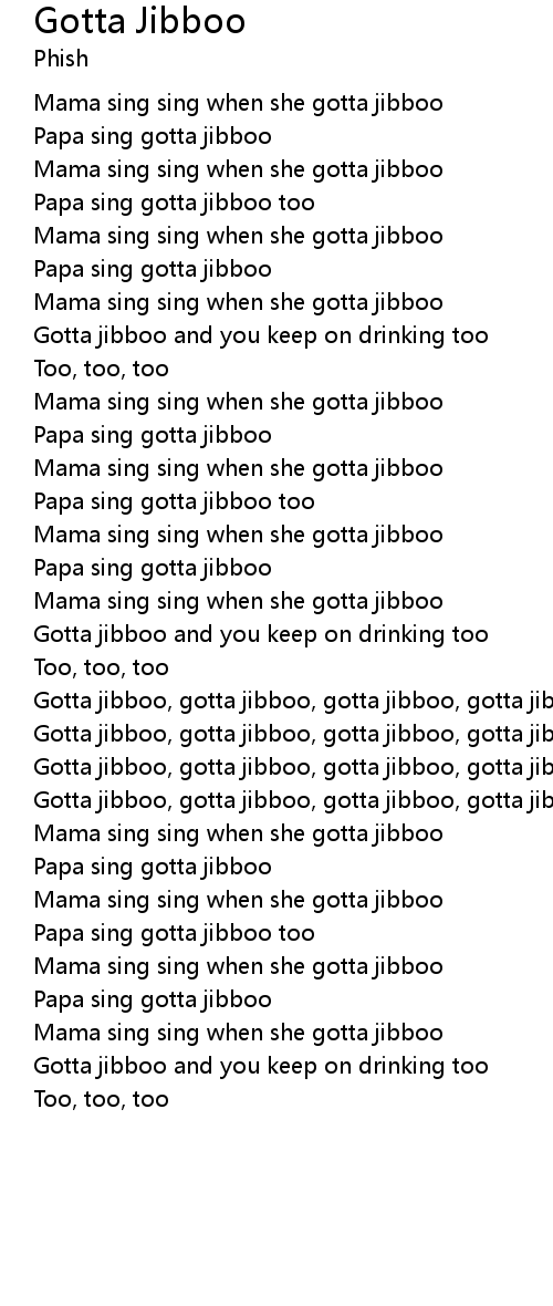 Gotta jibboo, gotta jibboo, gotta jibboo, gotta jibboo |