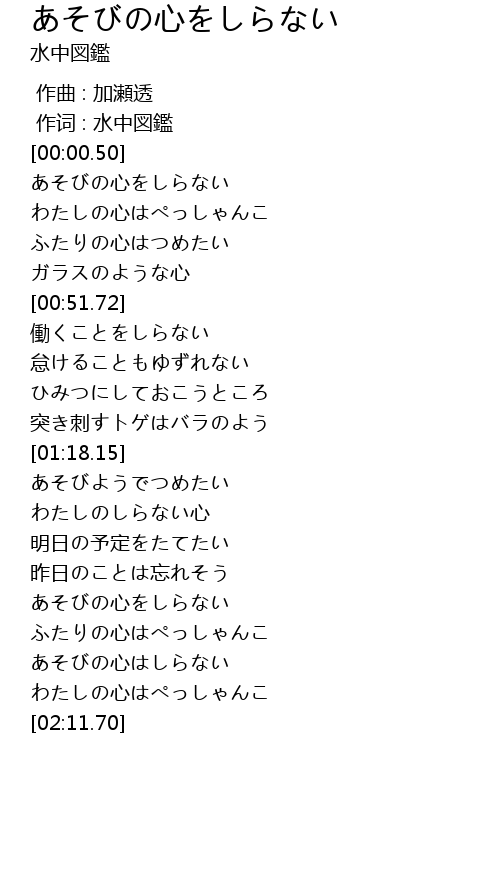 | [01:55.16] | ふたりの心はぺっしゃんこ |