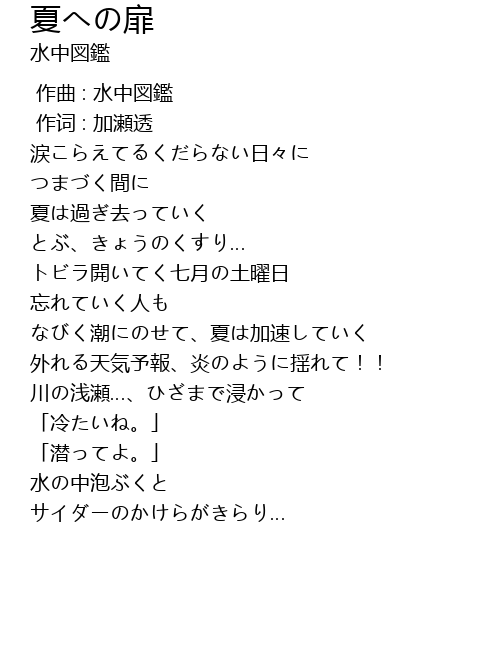 | Song | 夏への扉 |