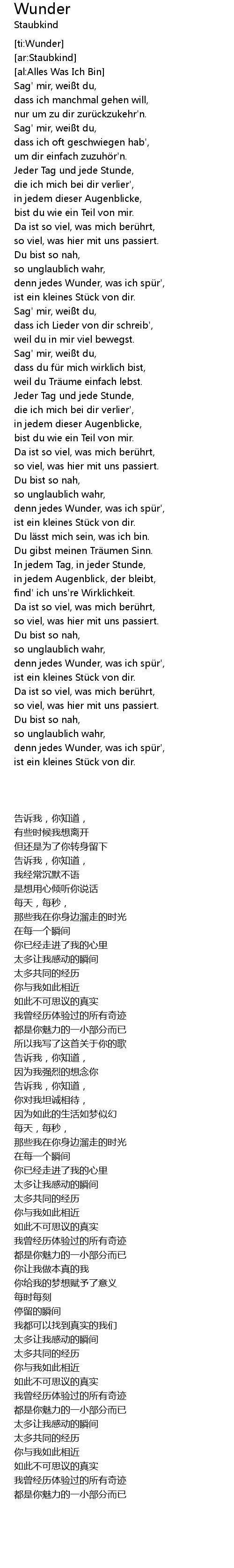 | [02:49.21] | denn jedes Wunder, was ich spü r', |