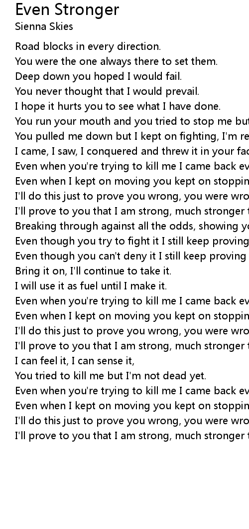 Even when you're trying to kill me I came back even stronger. |