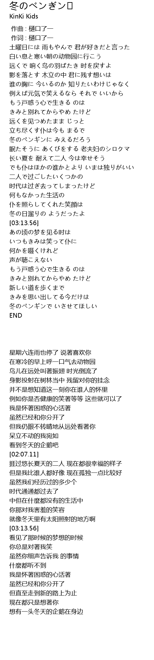 | [04:04.04] | 冬のペンギンで いさせてほしい |