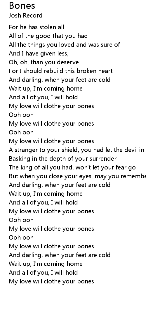 My love will clothe your bones |