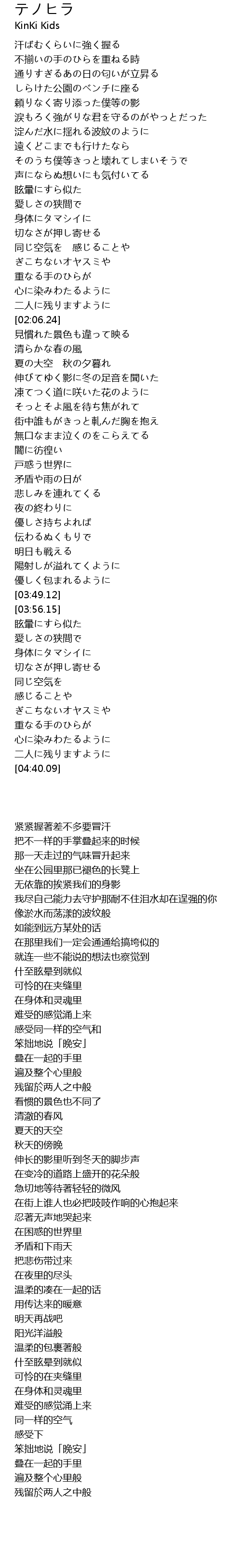 | [04:22.78] | 重なる手のひらが |