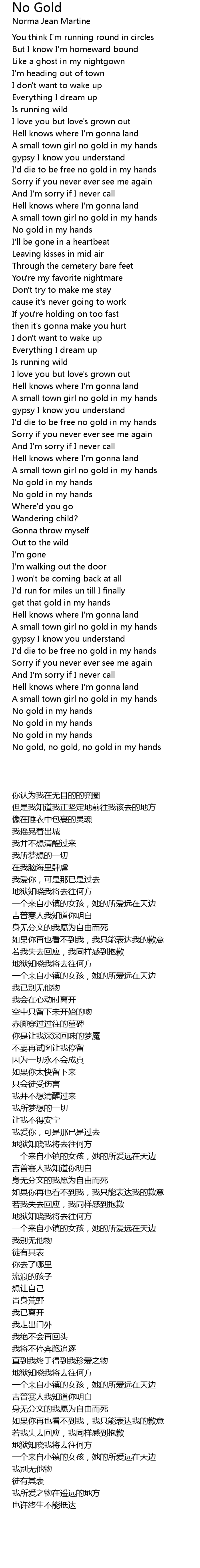 No Gold Lyrics