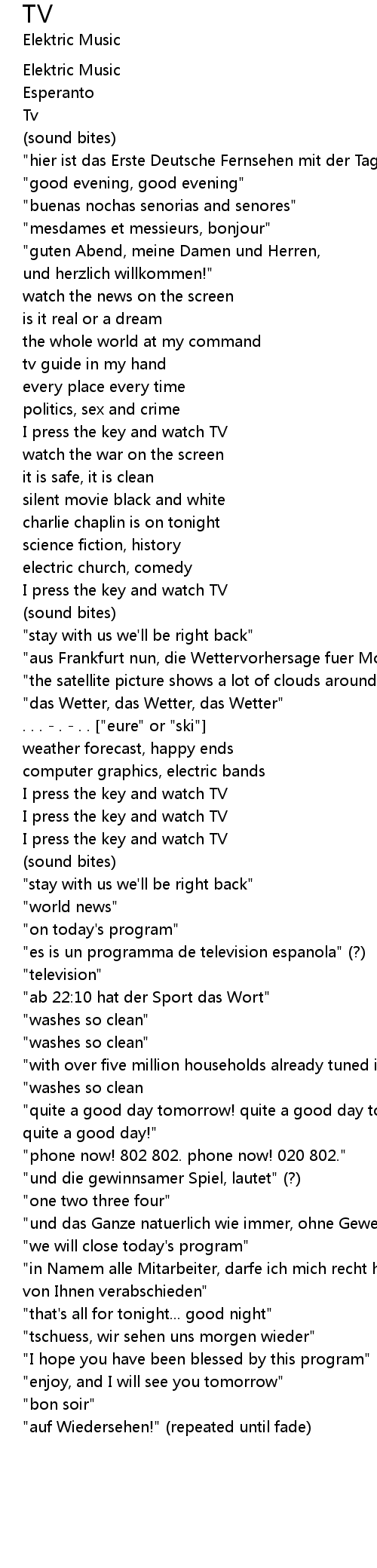 "auf Wiedersehen!" (repeated until fade) |