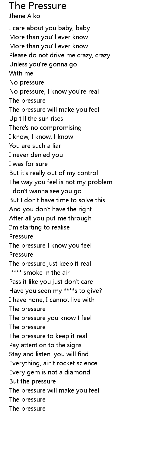 The pressure you know I feel |