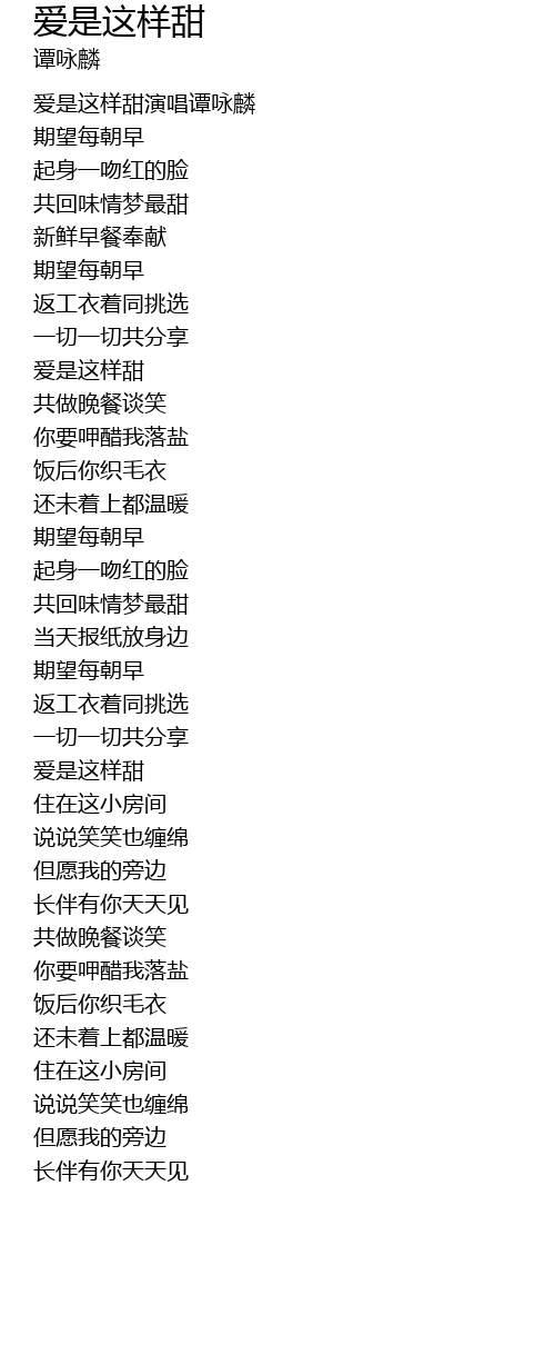 | [00:00.966] | 爱是这样甜演唱谭咏麟 |