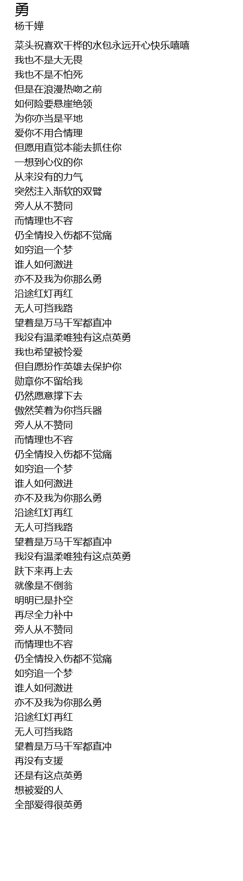 | [03:06.601] | hái shì yǒu zhè diǎn yīng yǒng |