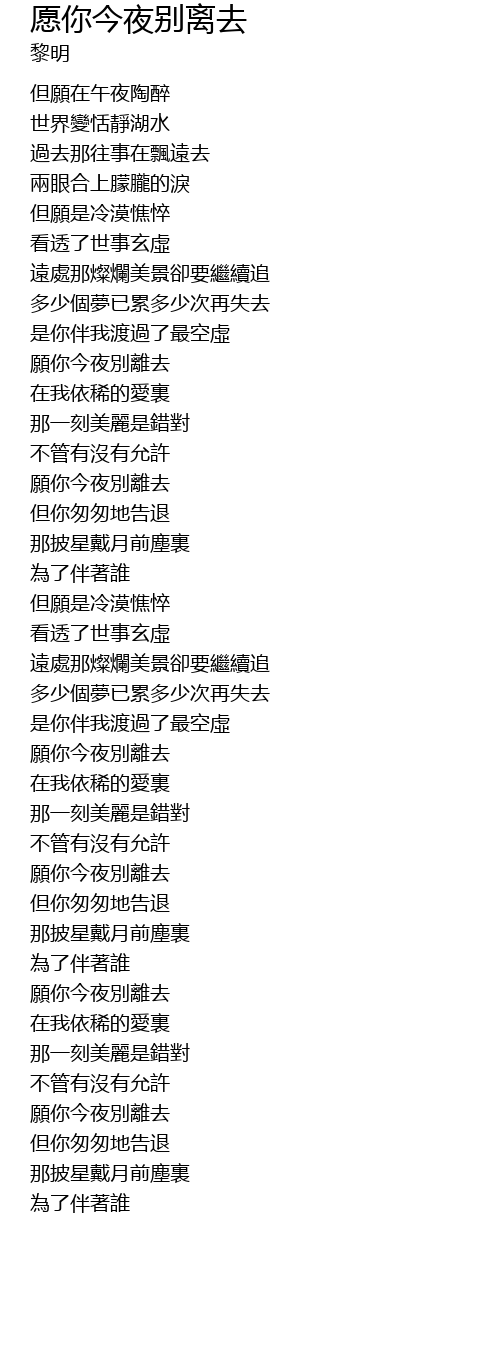 | [03:46.983] | yuàn nǐ jīn yè bié lí qù |