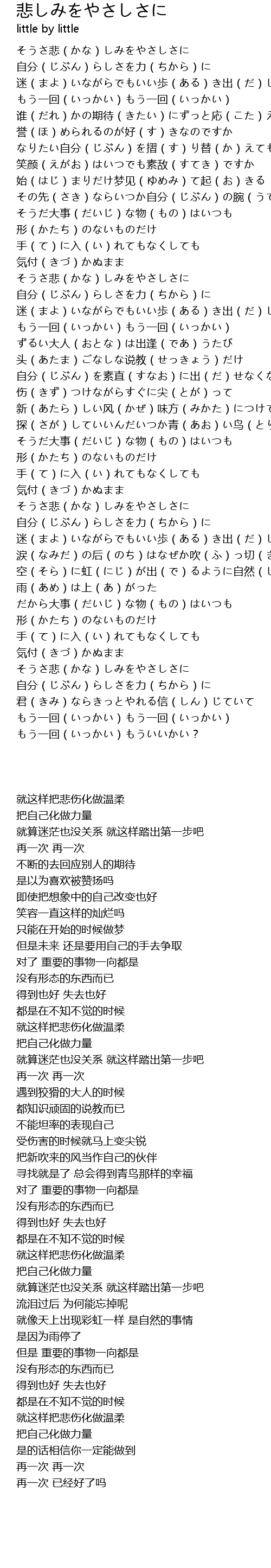 | [03:10.406] | 雨(あめ)は上(あ)がった |
