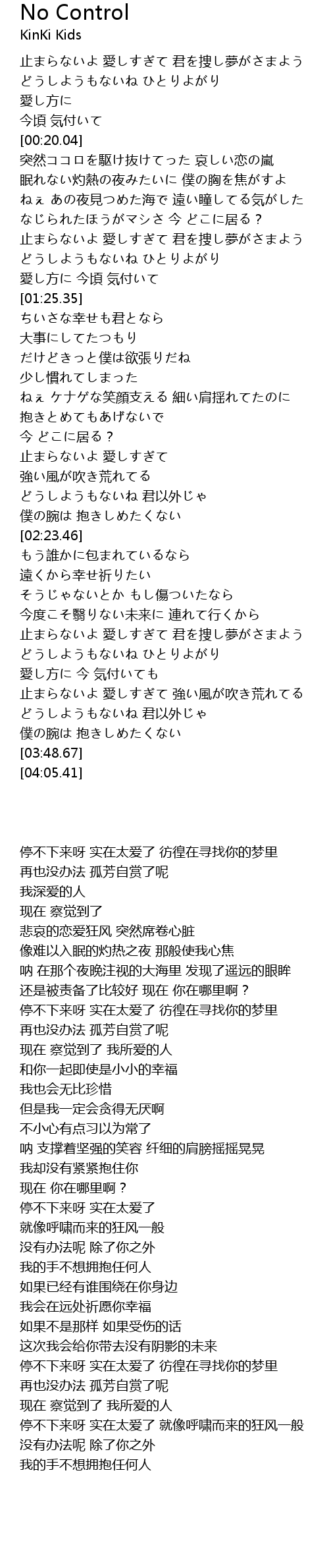 | [02:04.45] | 止まらないよ 愛しすぎて |