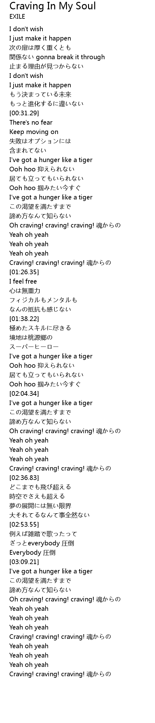 | [02:33.50] | Craving! craving! craving! hun |