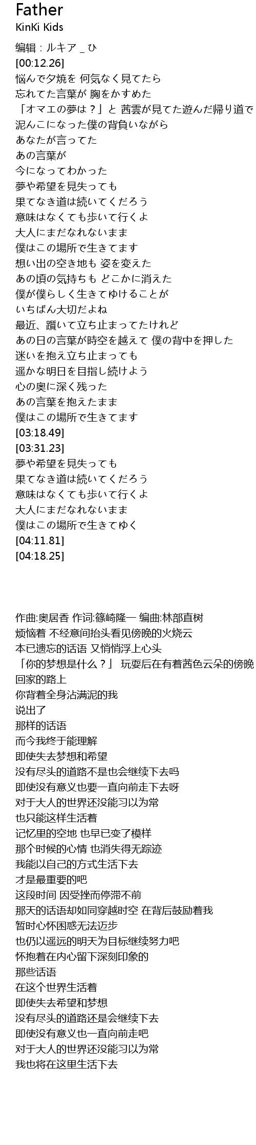| [00:41.98] | 泥んこになった僕の背負いながら |