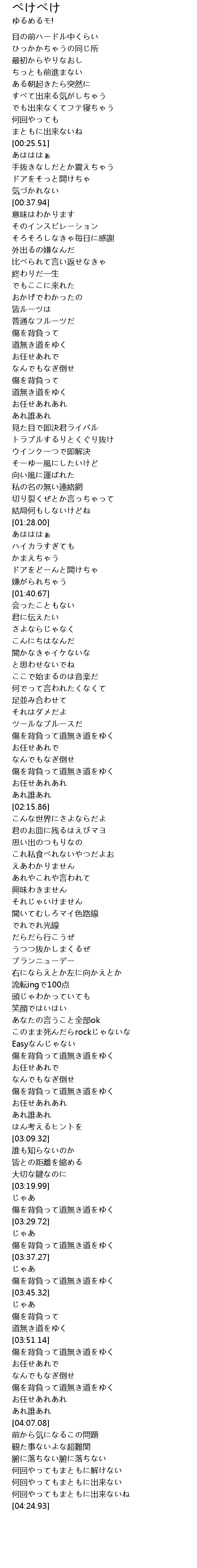 | [02:39.36] | うつつ抜かしまくるぜ |
