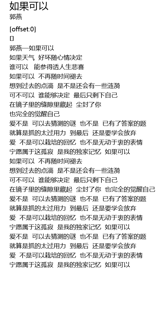 | [00:13.898] | 郭燕—如果可以 |