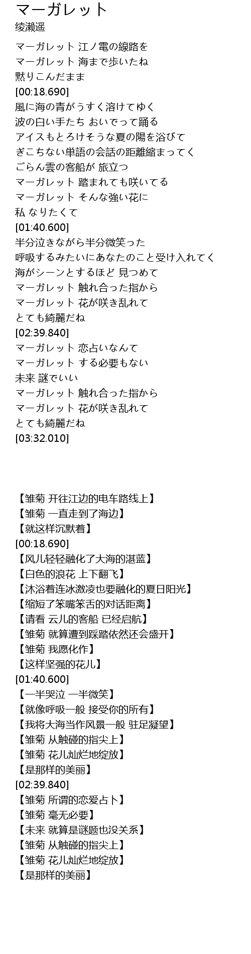 | [02:22.170] | マーガレット 触れ合った指から |