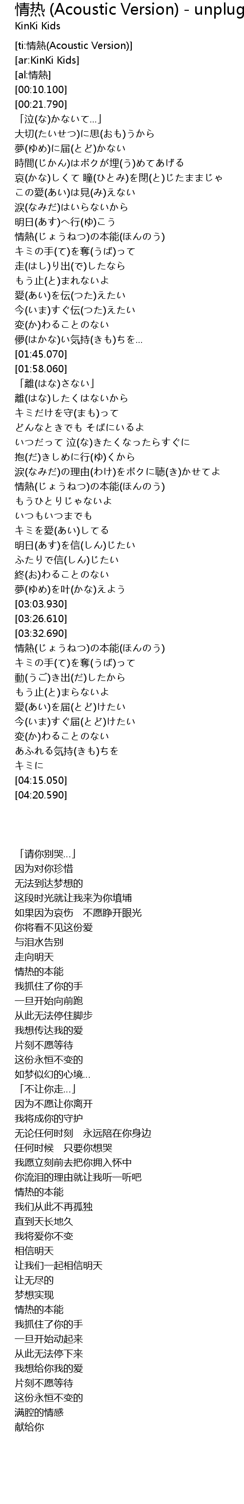 | [02:31.020] | 情熱(じょうねつ)の本能(ほんのう) |